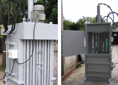 Compactador vertical hidráulico automático, para enfardar plástico, cartón y aluminio.